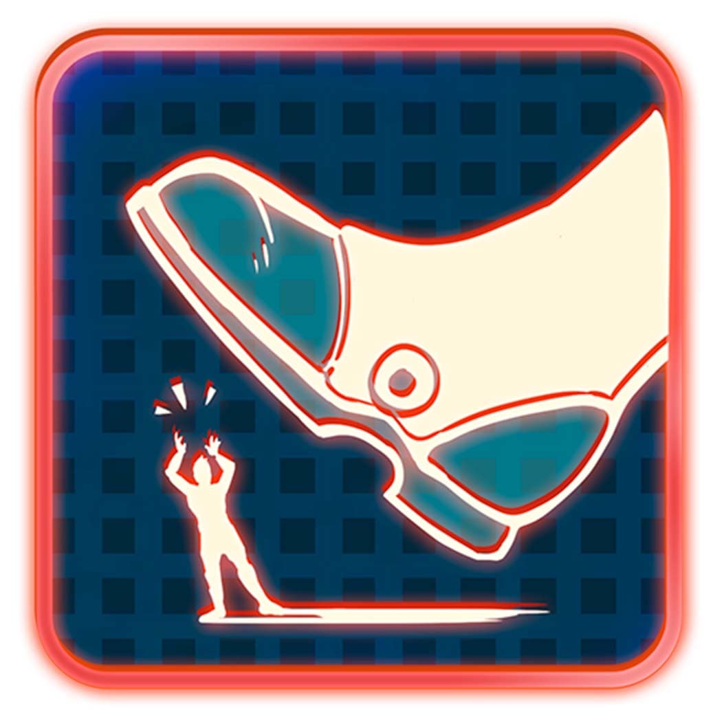 Сначала используй бластер «Уменьшающий луч», чтобы уменьшить врага, затем подпрыгни и раздави его ногой. Повтори это пять раз для трофея.