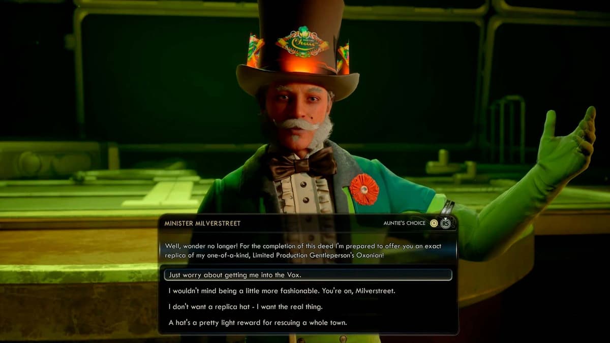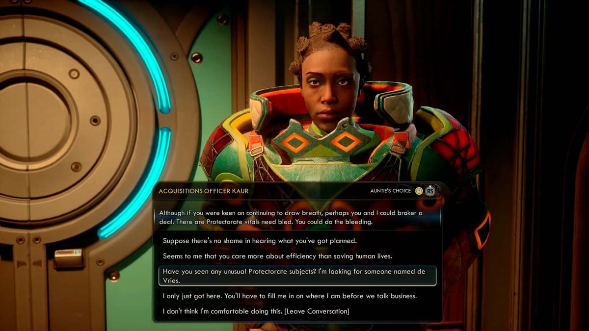 Первая серьёзная развилка в The Outer Worlds 2 — решить, с кем работать: с Министром Милверстритом или Офицером Каур. Выбрать можно только одного: квесты второго персонажа закроются. Оба обещают помочь пролезть в ретранслятор Вокс в задаче «Диверсантка в раю», но путь всего один — твой.
