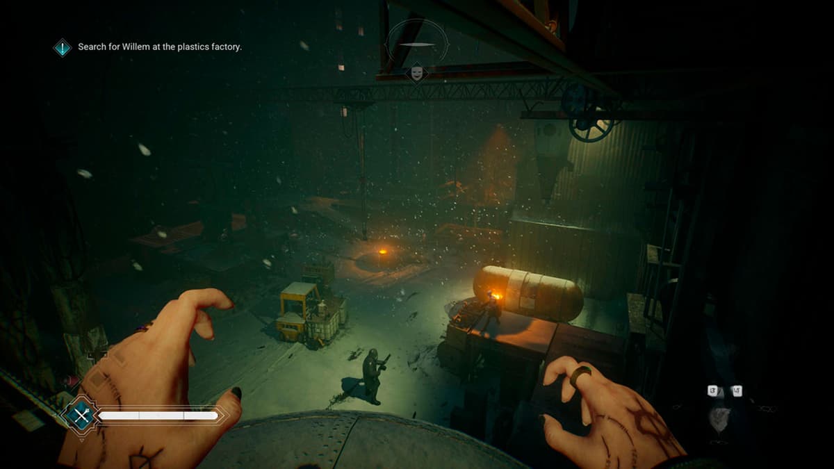 Тонкий момент: если ты сидишь на корточках на платформе над врагом, игра не всегда даёт контекстное «тихое убийство». Встань. Серьёзно, стоя у кромки обрыва шанс на скрытую анимацию выше. Подкрался в приседе, дождался, пока цель подойдёт — встал, нажал добивание, снова сел и растворился в тумане. Сначала может показаться, что на некоторых врагов стелс не работает, но всё дело в расположении камеры и позиции.