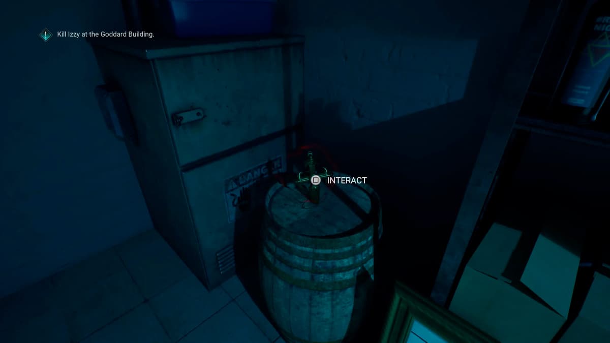 Зайди в подсобку. Двигайся вправо к дальнему углу. Крест торчит из верхушки деревянной бочки в правом дальнем углу.