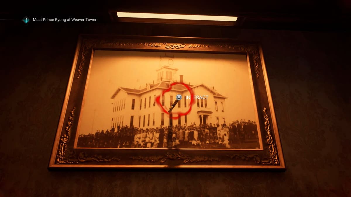 Поднимись на этаж и пройди от лифта прямо через арку в гостиную. Крест воткнут в винтажное фото Сиэтла слева от коридора дальше по линии.